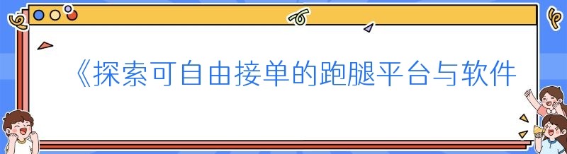 在当今社会,随着人们生活节奏的加快和需求的多样化,跑腿服务逐渐成为了一种热门的行业。对于那些想要通过跑腿来赚取额外收入的个人来说,选择一个合适的跑腿平台和软件至关重要。那么,究竟有哪些可以自己接单的跑腿平台呢?个人自由跑腿接单软件又哪个更出色呢?