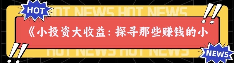 在当今社会,许多人都怀揣着创业的梦想,希望通过自己的努力实现财富自由。然而,对于大多数人来说,资金是创业路上的一大障碍。那么,有没有投资小又很赚钱的店铺或生意呢?让我们一起来探寻一下。