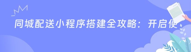 同城配送小程序搭建全攻略:开启便捷生活新时代
