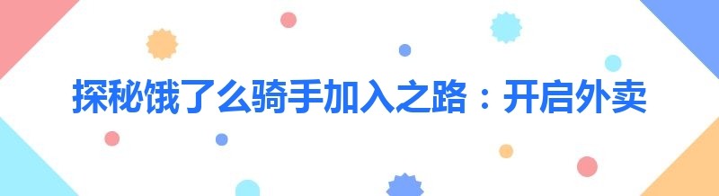 探秘饿了么骑手加入之路:开启外卖配送新征程