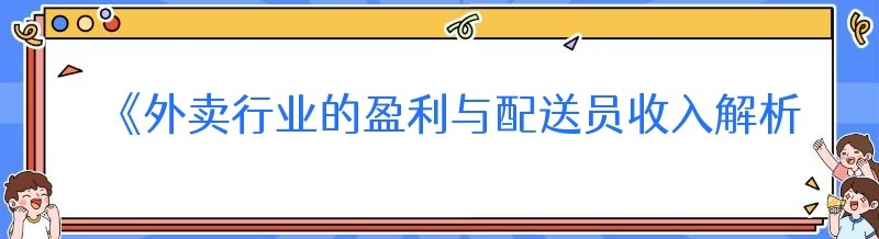 《外卖行业的盈利与配送员收入解析》