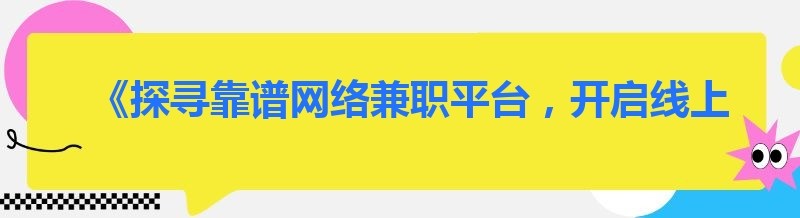 《探寻靠谱网络兼职平台,开启线上赚钱之旅》