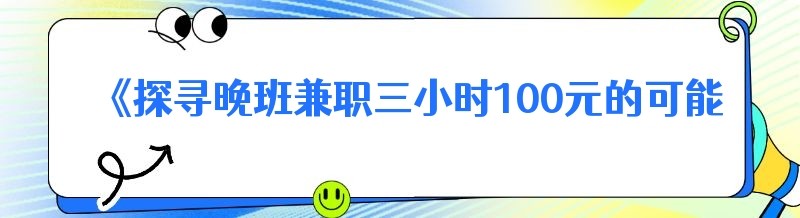 在当今社会,人们对于增加收入的需求日益增长,晚班兼职成为了许多人关注的焦点。其中,“晚班兼职三小时100元”这样的诱人条件更是吸引了不少人的目光。那么,在众多晚班兼职选择中,做外卖配送三小时究竟能挣多少呢?