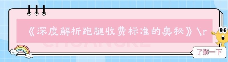 在现代社会,跑腿服务越来越受到人们的青睐。无论是帮取快递、送文件,还是代买物品、排队办事,跑腿小哥都能为我们节省时间和精力。然而,对于很多人来说,跑腿收费标准却是一个让人困惑的问题。不同的平台、不同的服务项目、不同的地区,收费标准都可能存在差异。那么,跑腿收费标准到底是如何制定的呢?本文将为你详细解析。