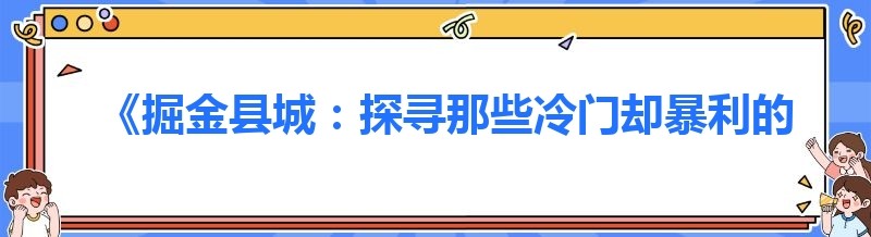 《掘金县城:探寻那些冷门却暴利的空白行业》