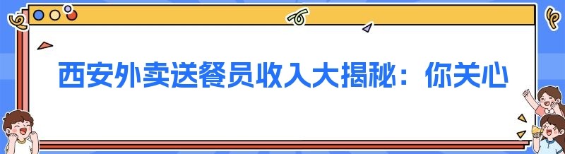 西安外卖送餐员收入大揭秘:你关心的都在这里