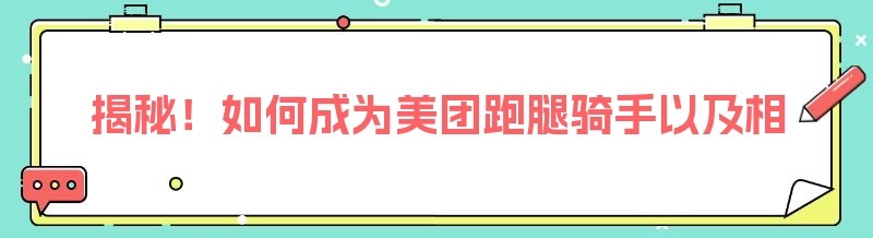 揭秘!如何成为美团跑腿骑手以及相关要点