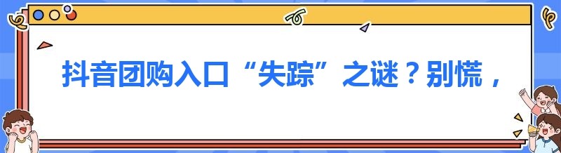 抖音团购入口“失踪”之谜?别慌,解决方案全在这!