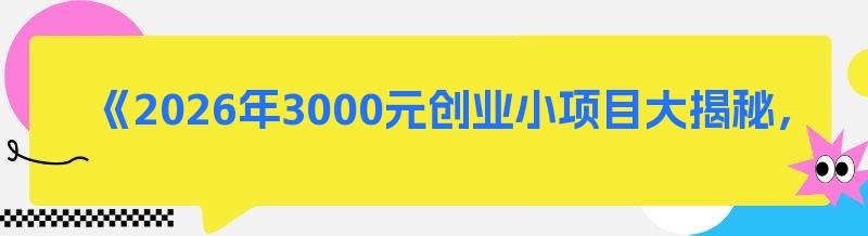 《2026年3000元创业小项目大揭秘,开启财富新征程》