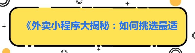 《外卖小程序大揭秘:如何挑选最适合你的那一款?》