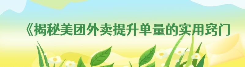 《揭秘美团外卖提升单量的实用窍门,助力商家销量飙升》