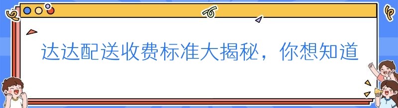 达达配送收费标准大揭秘,你想知道的都在这里!