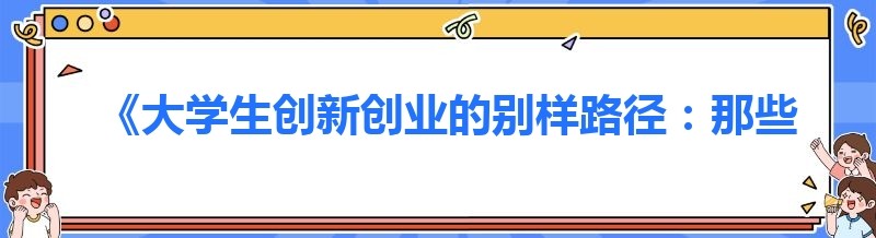 《大学生创新创业的别样路径:那些鲜为人知的冷门项目》