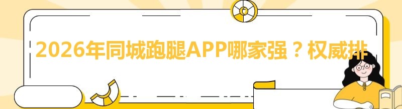 2026年同城跑腿APP哪家强?权威排行榜来袭!