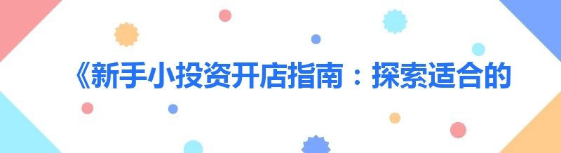 《新手小投资开店指南:探索适合的创业之路》