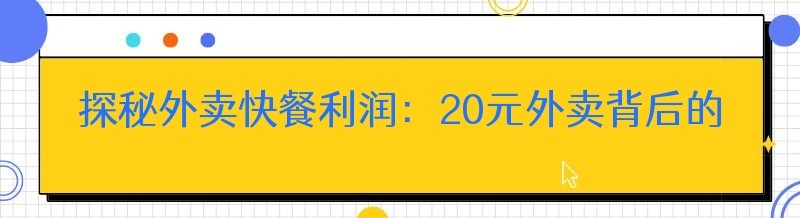 要了解20元外卖的利润,首先得清楚其成本构成。一份20元的外卖,成本主要包括以下几个方面: