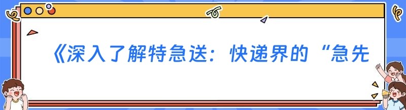 《深入了解特急送:快递界的“急先锋”》