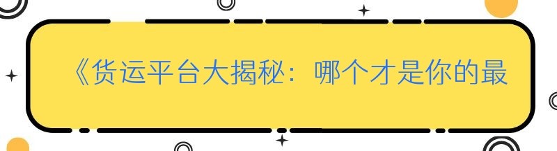 《货运平台大揭秘:哪个才是你的最佳选择?》