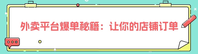 外卖平台爆单秘籍:让你的店铺订单如潮水般涌来