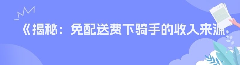 在如今的外卖市场中,免配送费的活动屡见不鲜。这不禁让人产生疑问,免配送费了,骑手还能赚什么呢?骑手赚的真的仅仅只是配送费吗?