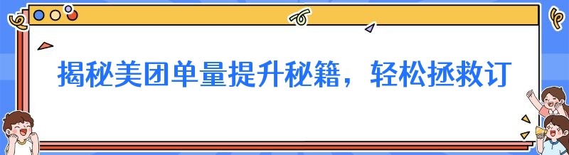 揭秘美团单量提升秘籍,轻松拯救订单量