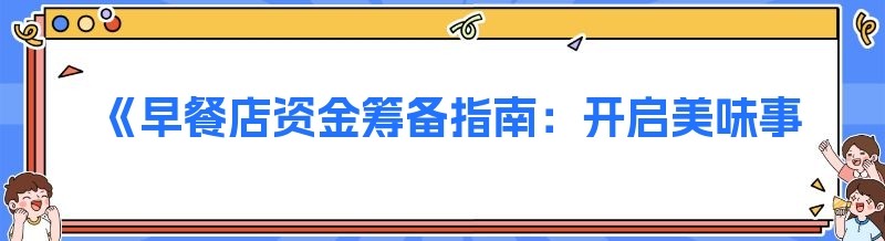 《早餐店资金筹备指南:开启美味事业的第一步》