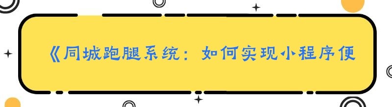 在当今数字化时代,同城跑腿服务日益普及,而小程序作为一种便捷的应用方式,为用户提供了更加方便快捷的下单体验。那么,同城跑腿系统如何才能做到方便快捷呢?