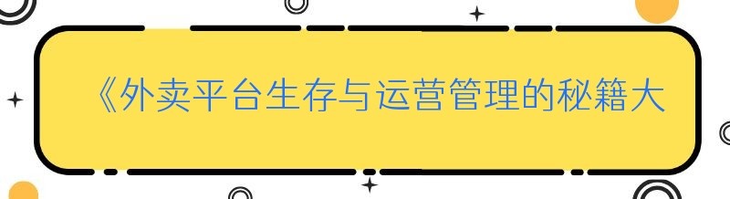 《外卖平台生存与运营管理的秘籍大揭秘》