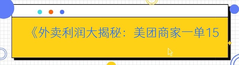 《外卖利润大揭秘:美团商家一单15元究竟能赚多少?》