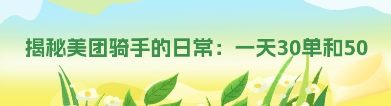 揭秘美团骑手的日常:一天30单和50单的真相