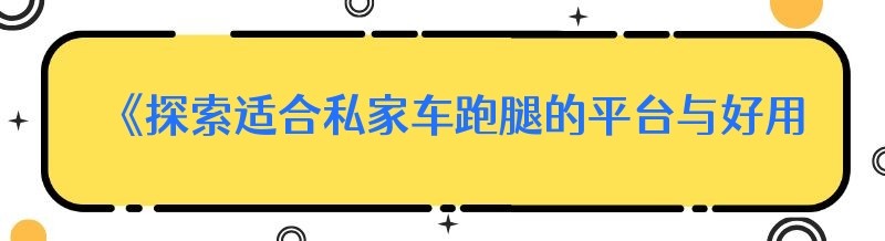 《探索适合私家车跑腿的平台与好用的同城跑腿系统》