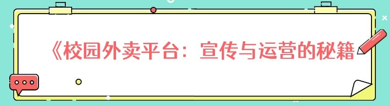 在大学校园这个充满活力与消费潜力的市场中,校园外卖平台如雨后春笋般涌现。然而,要想在激烈的竞争中脱颖而出,成功地宣传和运营校园外卖平台并非易事。本文将为您详细剖析校园外卖平台的宣传与运营策略,助您打造一个备受学生喜爱的外卖平台。