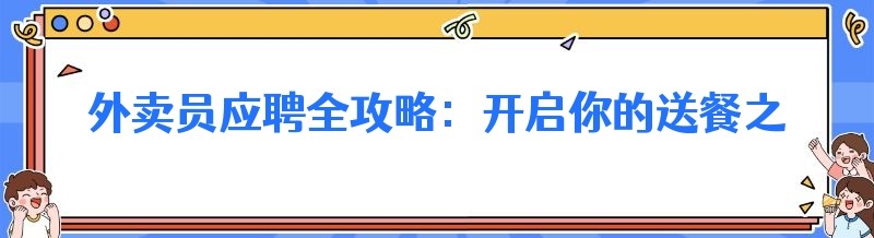 在当今社会,外卖行业蓬勃发展,外卖员成为了一个热门的职业选择。如果你也对这个充满活力的工作感兴趣,那么这篇文章将为你提供一份详细的外卖员应聘全攻略,帮助你顺利开启送餐之旅。