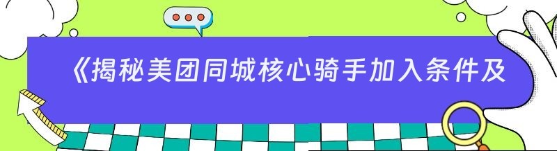 《揭秘美团同城核心骑手加入条件及成为美团外卖配送员的必备要素》
