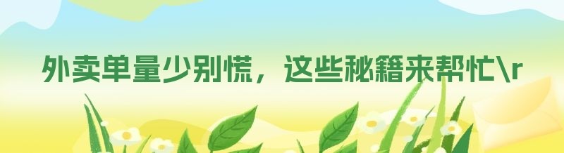 编辑 外卖单量少别慌,这些秘籍来帮忙