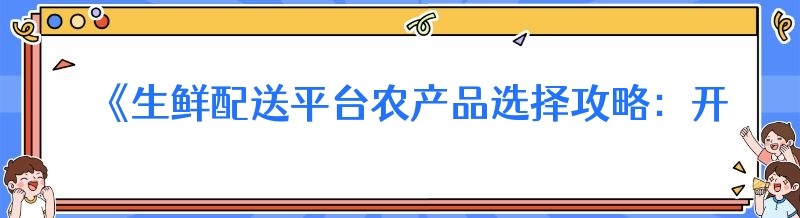 编辑 《生鲜配送平台农产品选择攻略:开启成功之路》