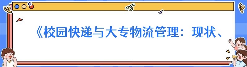 《校园快递与大专物流管理:现状、趋势与前景的深度剖析》