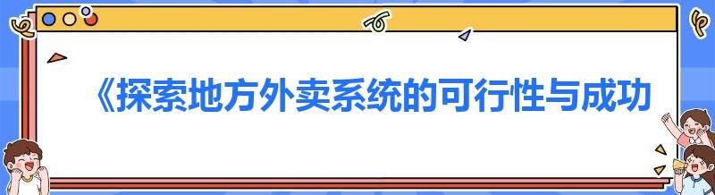 编辑 《探索地方外卖系统的可行性与成功之道》