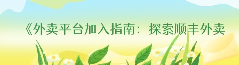《外卖平台加入指南:探索顺丰外卖的加入之路》