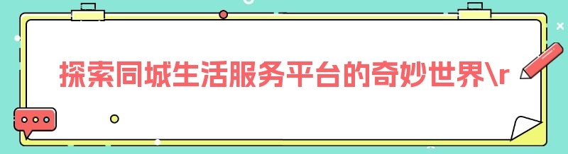 探索同城生活服务平台的奇妙世界