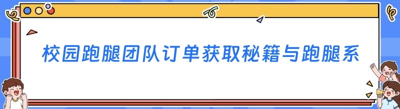 校园跑腿团队订单获取秘籍与跑腿系统优势大揭秘