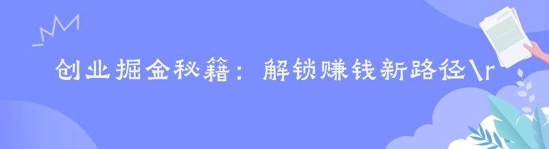 创业,这个充满激情与挑战的词汇,一直以来都吸引着无数怀揣梦想的人。在这个瞬息万变的时代,创业不仅是实现自我价值的途径,更是创造财富、改变命运的契机。然而,创业之路并非一帆风顺,如何在众多创业者中脱颖而出,实现盈利,是每一位创业者都必须面对的难题。本文将为您揭开创业挣钱的神秘面纱,分享一些实用的方法和策略,帮助您在创业的道路上少走弯路,早日实现财富自由。