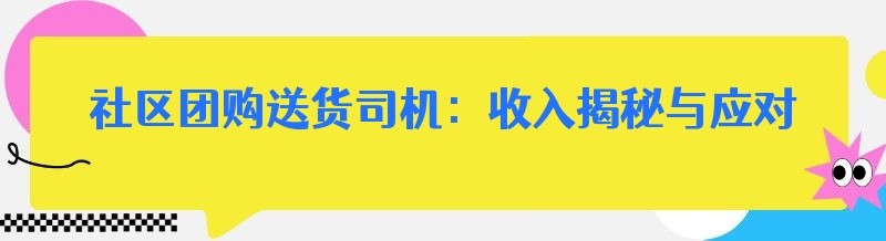 社区团购送货司机:收入揭秘与应对之策