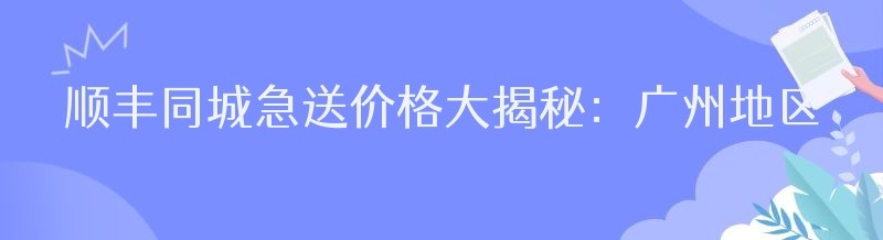 顺丰同城急送价格大揭秘:广州地区的收费标准你了解吗?