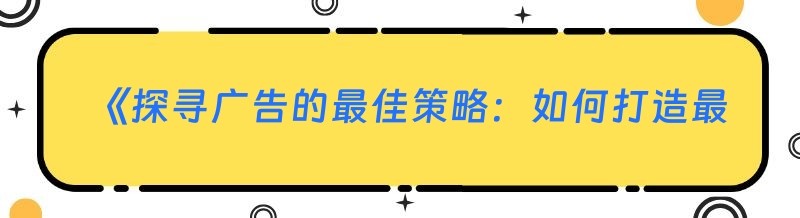 《探寻广告的最佳策略:如何打造最有效的广告》