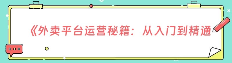 编辑 《外卖平台运营秘籍:从入门到精通》