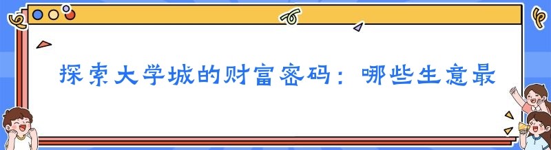 在充满活力与朝气的大学城,商机无限,吸引着众多创业者的目光。那么,大学城究竟什么生意最赚钱?又有哪些经营项目最火呢?让我们一同深入探究。
