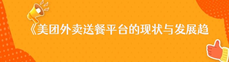 综上所述,美团外卖送餐平台作为国内领先的外卖送餐平台之一,拥有较高的品牌知名度、技术优势、用户优势和商家优势。同时,美团外卖也面临着竞争压力、食品安全问题和骑手管理问题等挑战。未来,美团外卖将不断推进智能化、多元化和国际化建设,提高送餐效率和服务质量,为用户提供更加便捷、快速、优质的服务。