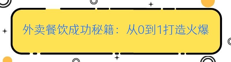 编辑 外卖餐饮成功秘籍:从0到1打造火爆外卖店