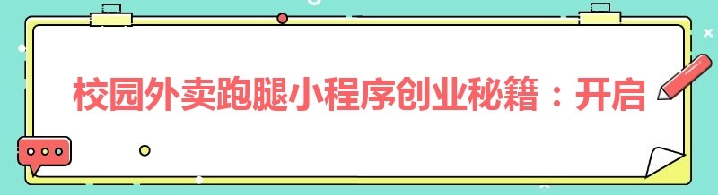 校园外卖跑腿小程序创业秘籍:开启成功之路的关键技巧